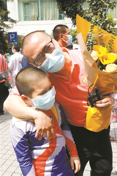 “奧特曼”爸爸和兒子團聚。廣州日報全媒體記者駱昌威 攝