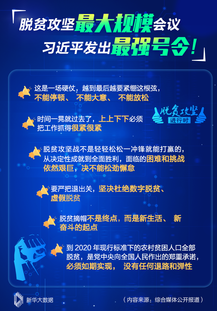 今年是脫貧攻堅戰最后一年,收官之年又遭遇疫情影響,各項工作任務更重、要求更高。3月6日,習近平出席決戰決勝脫貧攻堅座談會強調,到2020年現行標準下的農村貧困人口全部脫貧,是黨中央向全國人民作出的鄭重承諾,必須如期實現,沒有任何退路和彈性。這是黨的十八大以來脫貧攻堅方面最大規模的會議,受到極大關注。
