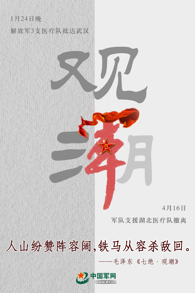 經(jīng)中央軍委主席習近平批準,軍隊支援湖北醫(yī)療隊在圓滿完成承擔的武漢火神山醫(yī)院、武漢市泰康同濟醫(yī)院、湖北省婦幼保健院光谷院區(qū)確診患者醫(yī)療救治任務(wù)后,采取民航包機和鐵路運輸投送方式,陸續(xù)離開武漢完成回撤。