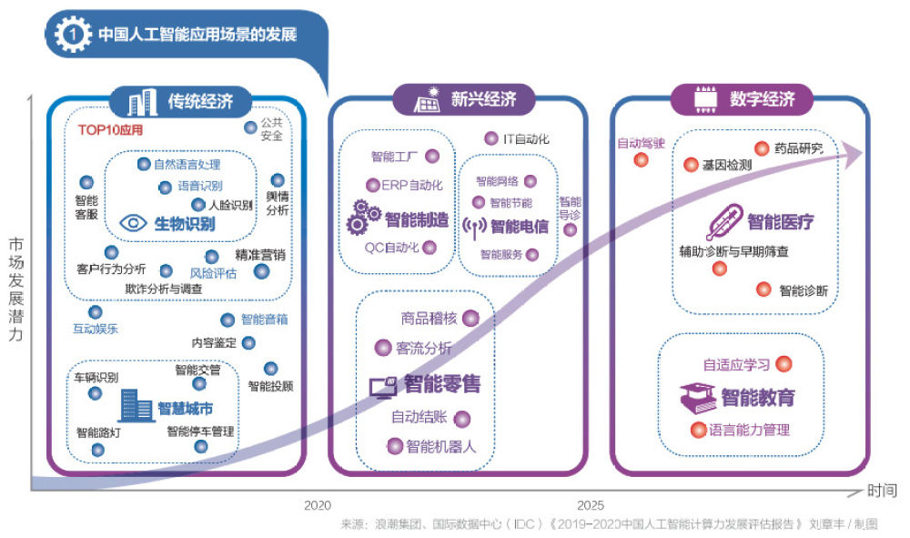 隨著新基建的加速建設,人工智能與大數據、云計算、物聯網等融合也會進一步加快,智慧醫療、無人駕駛、智慧城市、智慧金融等應用場景,背后都需要算力支撐。(見圖1)