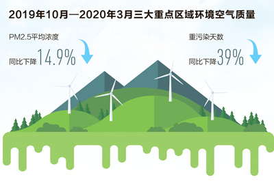 2019—2020年秋冬季,藍(lán)天保衛(wèi)戰(zhàn)交出了一份亮麗的成績單。三大重點(diǎn)區(qū)域均大幅度超額完成空氣質(zhì)量改善目標(biāo),PM2.5平均濃度同比下降14.9%,重污染天數(shù)同比下降39%。