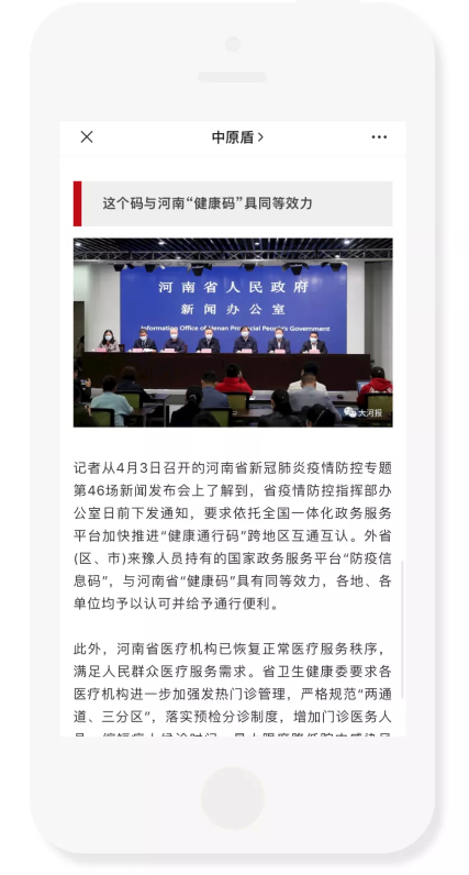 河南省依托全國(guó)一體化政務(wù)服務(wù)平臺(tái)加快推進(jìn)“健康通行碼”跨地區(qū)互通互認(rèn)。外省(區(qū)、市)來(lái)豫人員持有的國(guó)家政務(wù)服務(wù)平臺(tái)“防疫信息碼”,與河南省“健康碼”具有同等效力,各地、各單位均予以認(rèn)可并給予通行便利。