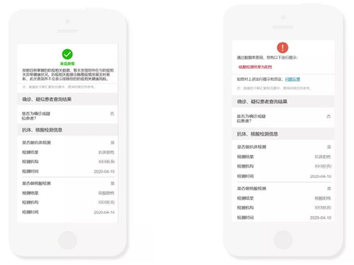 此外,核酸和抗體檢測結果信息還納入了全國一體化平臺“防疫健康信息碼”服務。用戶可通過國家政務服務平臺微信、支付寶、百度小程序,根據操作指引申領國家平臺的“防疫健康信息碼”,“防疫健康信息碼”會如實反映本人7天內核酸及抗體檢測結果。如核酸檢測結果為陰性,則防疫健康風險狀態顯示“未見異?!?。如核酸檢測結果為陽性,則會出現“核酸檢測結果為陽性”的出行提示。如果7天內未做過核酸及抗體檢測,防疫健康信息會根據個人當前提供的相關數據顯示健康風險結果。