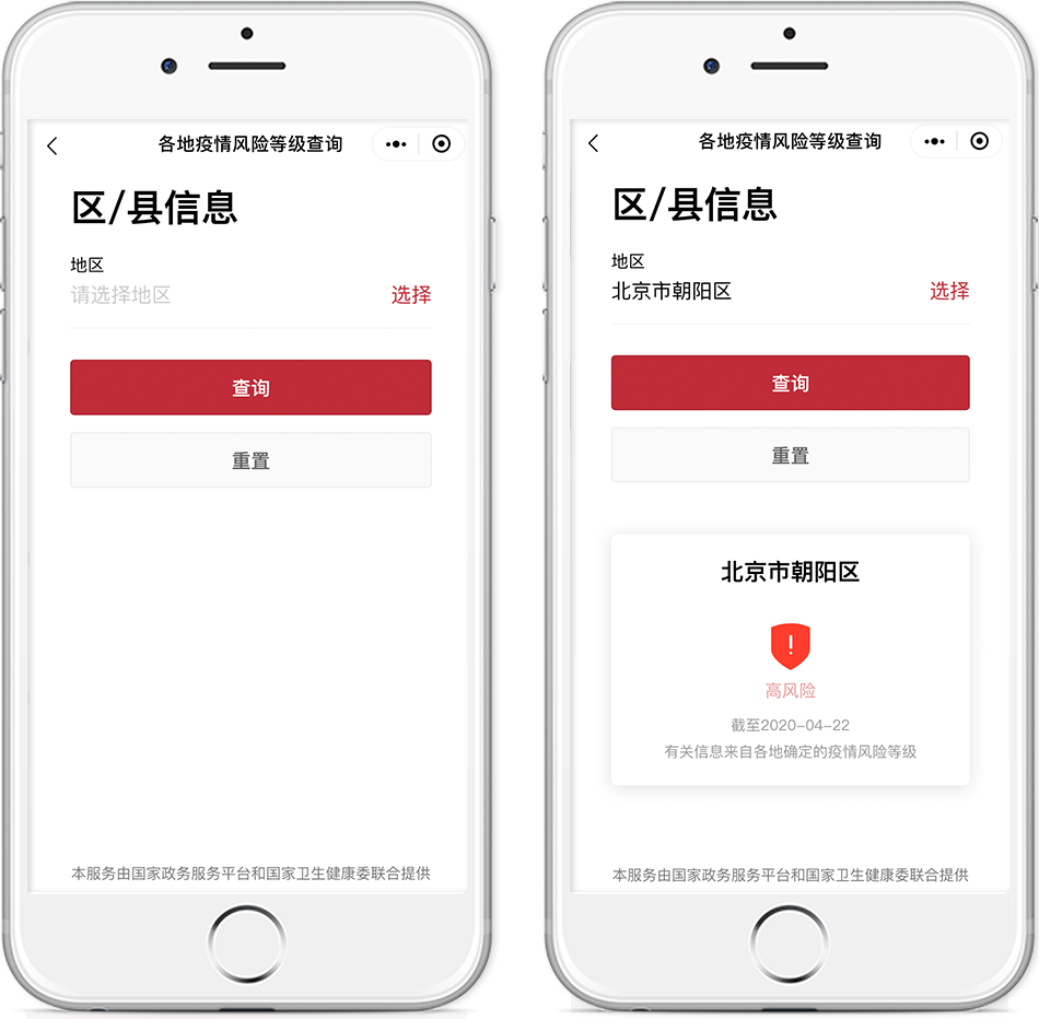 出行前,你可以用此服務(wù)查詢(xún)你所在地和目的地的疫情風(fēng)險(xiǎn)等級(jí)。該服務(wù)根據(jù)國(guó)家衛(wèi)生健康委數(shù)據(jù)進(jìn)行動(dòng)態(tài)更新,只需簡(jiǎn)單輸入地區(qū)即可查詢(xún)。