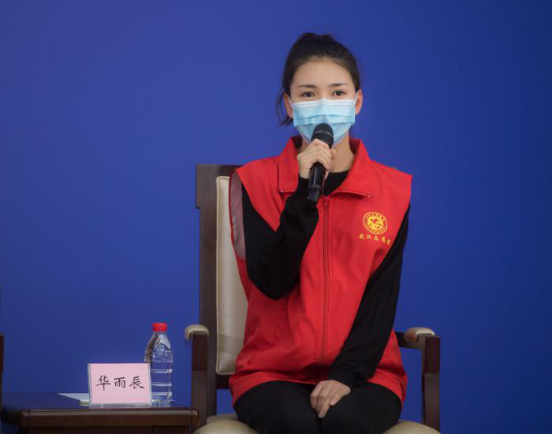2020年2月23日,國務院新聞辦公室在湖北武漢舉行國務院新聞辦記者見面會,邀請在武漢疫情防控一線的普通工作者講述他們團結奮戰的故事,并回答記者提問。圖為武漢市青山區鋼花小學音樂教師華雨辰在記者會上。新華社記者 肖藝九/攝