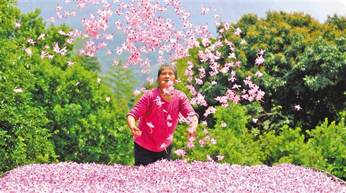 5月5日,在貴州省赤水市長沙鎮長興村,農戶在晾曬剛采摘的金釵石斛鮮花。近年來,赤水市積極推進生態農業與鄉村旅游產業融合發展,引導農民在丹霞石上種植金釵石斛9萬余畝,助力脫貧攻堅和鄉村振興。王長育攝(中經視覺)