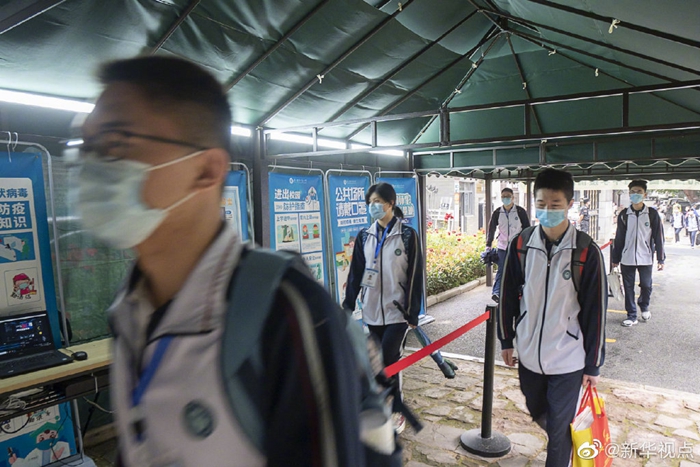 5月6日,武漢首批121所學(xué)校高三年級正式復(fù)學(xué),學(xué)生返校上課。據(jù)了解,開學(xué)前,所有校園均開展了衛(wèi)生清潔和預(yù)防性消殺工作,所有學(xué)生返校前須進(jìn)行健康檢測。第一批復(fù)學(xué)學(xué)校121所,包括普通高中學(xué)校83所和中職學(xué)校38所。(記者 熊琦 樂文婉)