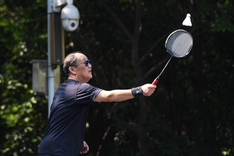 5月3日,一位市民在合肥市環城公園內打羽毛球。 當日是“五一”假期第三天,合肥市民紛紛來到戶外,健身休閑,樂享假期。 新華社記者 張端 攝