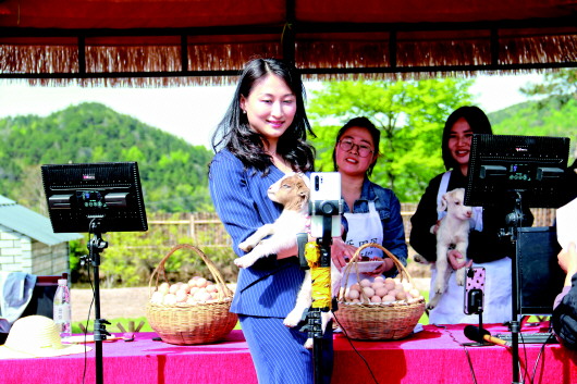 4月7日,在安徽香茗山的喜樂田園農場,太湖縣副縣長唐翔與網友互動。 受訪者供圖