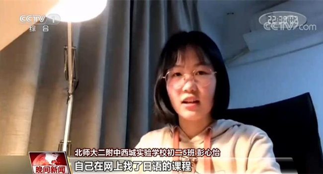 北師大二附中西城實驗學校初二5班 彭心怡:在這段時間里,自己在網上找了日語的課程,跟老師一對一學習。我希望大家也可以合理安排自己的學習內容,好好利用時間。