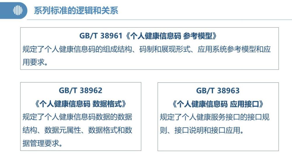 據了解,健康碼“國標”由《參考模型》《數據格式》和《應用接口》三項標準構成??傮w上來看,《參考模型》是框架性標準,重在提出“健康碼”應用系統和系統間互認的技術模型;《數據格式》規范了個人健康信息數據,重點在數據“原料”層面下功夫;《應用接口》則可看作是框架模型下實現系統對接互認的操作指導手冊。三項標準互為支撐和補充,共同適用于指導“健康碼”系統的設計、開發和系統集成。