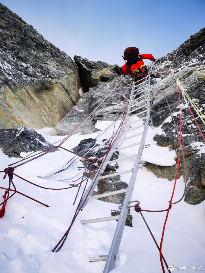 2020珠峰高程測(cè)量登山隊(duì)隊(duì)員已跨過(guò)第二臺(tái)階,準(zhǔn)備攀登第三臺(tái)階,進(jìn)行沖頂