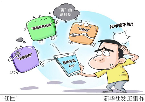 “點擊手機網頁卻跳轉到App”“并未調用App卻自行開啟后臺運行”“某個App被調用后自行調用、激活眾多其他App”……部分手機App持續“任性不服管”,不僅讓用戶無奈,也損害用戶權益,造成安全隱患。