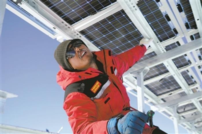 曾應根為泰山站新能源系統(tǒng)安裝光伏太陽能板。受訪者供圖