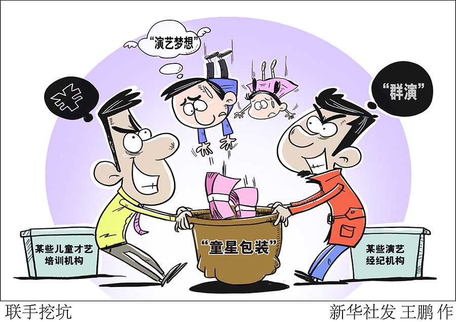 在兒童才藝培訓市場缺乏有效監(jiān)管的現(xiàn)狀下,一些培訓機構(gòu)、演藝經(jīng)紀公司以才藝培訓作幌子,動輒向家長收取上萬元培訓費用,其實是兜售表演機會;而演藝經(jīng)紀機構(gòu)一旦高價“招募”到一名兒童演員,就會給培訓機構(gòu)分成,培訓機構(gòu)借此也能顯示與電視臺、節(jié)目制作方有合作,對招生構(gòu)成“金字招牌”,容易吸引家長報班,二者合作心照不宣。