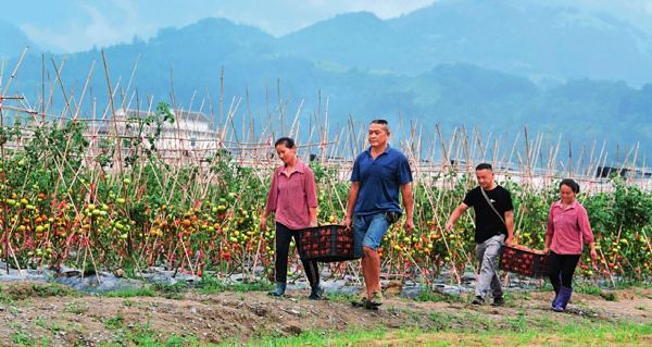 貴州榕江“壩區(qū)經(jīng)濟”助農(nóng)增收。這是6月2日,農(nóng)民在貴州省榕江縣車江壩區(qū)采收西紅柿 楊文斌攝 / 本刊