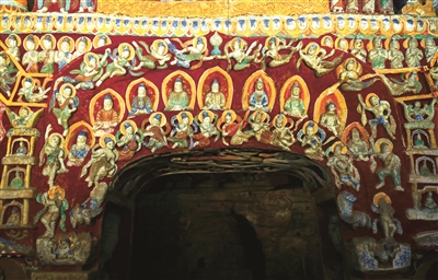 云岡石窟研究院美術工作團隊依照古法用礦物顏料為面積大約900多平方米的復制窟上色,歷經8個月的時間,終于讓12窟完成了其形色具足的復制,煥然呈現。