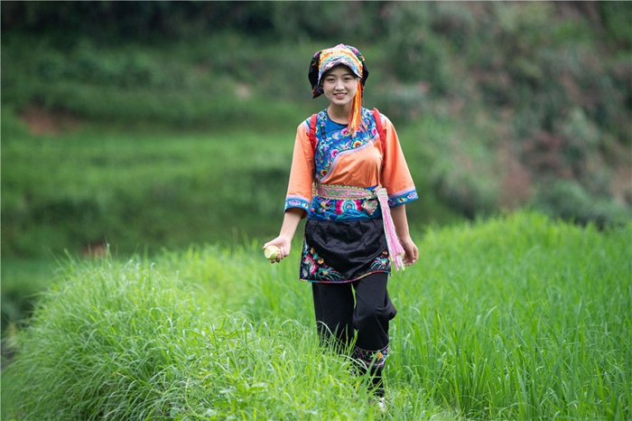 這是在湘西十八洞村拍攝的返鄉創業大學生施林嬌(7月3日攝)。新華社記者 陳思汗 攝