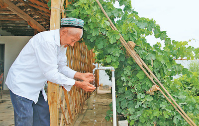 如今,伊米提老人家廚房、衛生間和院子里各有一個水龍頭,擰開就能喝到甘甜的水?!斑@是慕士塔格峰的雪水!水甜,生活更甜!”伊米提從菜園里摘了西紅柿,在水龍頭下沖了沖,吃到嘴里,甜滋滋的。(記者 李亞楠)