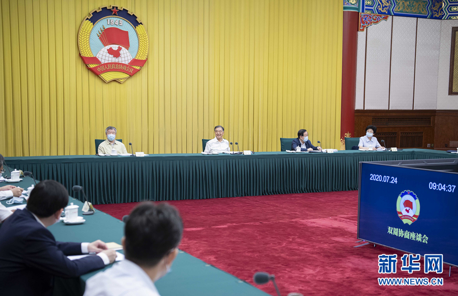 7月24日,十三屆全國政協(xié)第38次雙周協(xié)商座談會在北京召開。中共中央政治局常委、全國政協(xié)主席汪洋主持會議。 新華社記者 李濤 攝