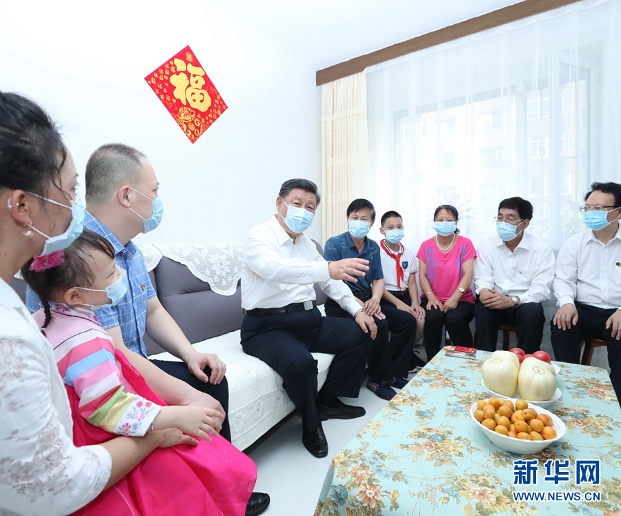 7月22日至24日,中共中央總書記、國家主席、中央軍委主席習近平在吉林省考察。這是7月23日下午,習近平在長春市寬城區(qū)團山街道長山花園社區(qū),同居民趙興福一家嘮家常。 新華社記者 鞠鵬 攝