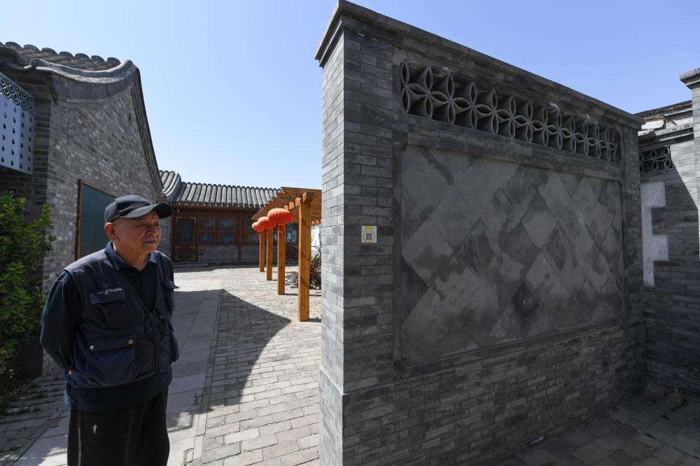 69歲的居民崇寶才在修繕一新的北京市東城區雨兒胡同30號院內(5月13日攝)。新華社記者 鞠煥宗 攝