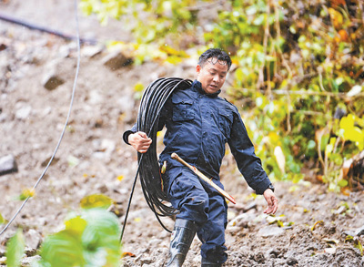 阿旺背著光纜在查找線路斷點。本報記者 徐馭堯攝