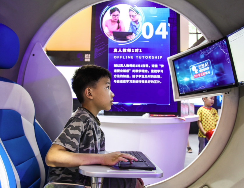 小觀眾在上海科博會體驗一對一在線教育產品