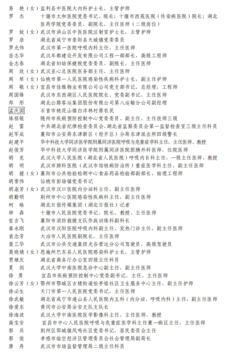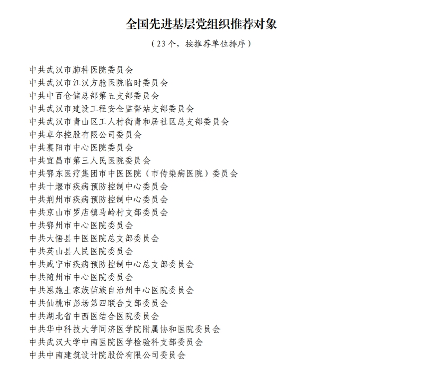 據湖北省人民政府網站消息,5日,湖北省人民政府發布關于全國抗擊新冠肺炎疫情先進個人、先進集體和全國優秀共產黨員、全國先進基層黨組織推薦對象的公示。武漢市武昌醫院原黨委副書記、院長,主任醫師劉智明等入選。
