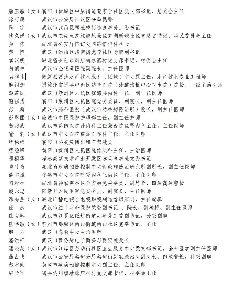 如對公示對象有不同意見,請于8月9日18時前,以電話、傳真或信函等方式向湖北省推薦工作領導小組辦公室反映(信函以到達日郵戳為準)。反映情況須實事求是,提供具體線索或事實依據,提倡實名反映問題。