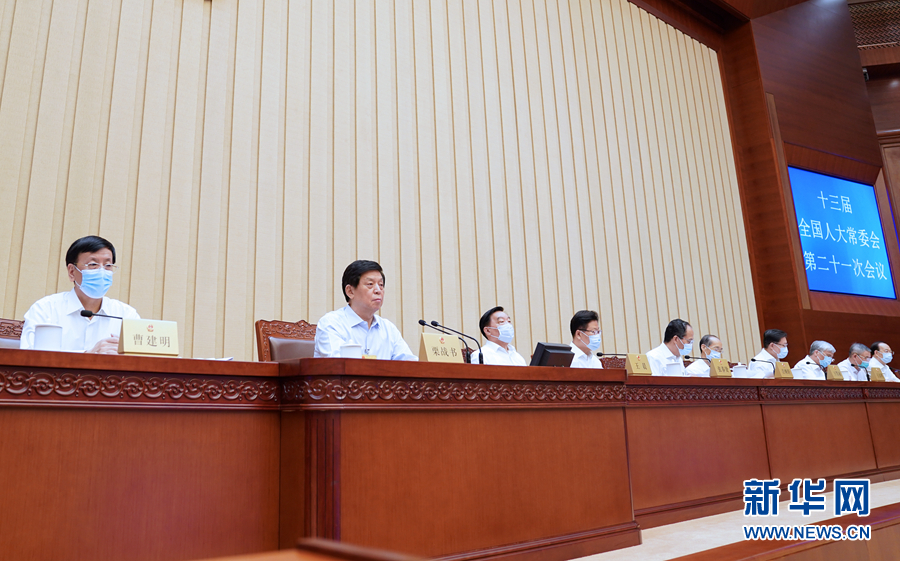 8月8日,十三屆全國人大常委會第二十一次會議在北京人民大會堂舉行第一次全體會議,栗戰書委員長主持。 新華社記者 張領 攝