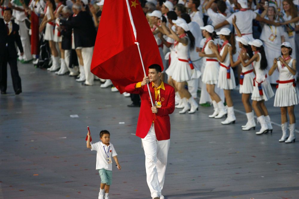 手舉國旗入場(chǎng)的姚明