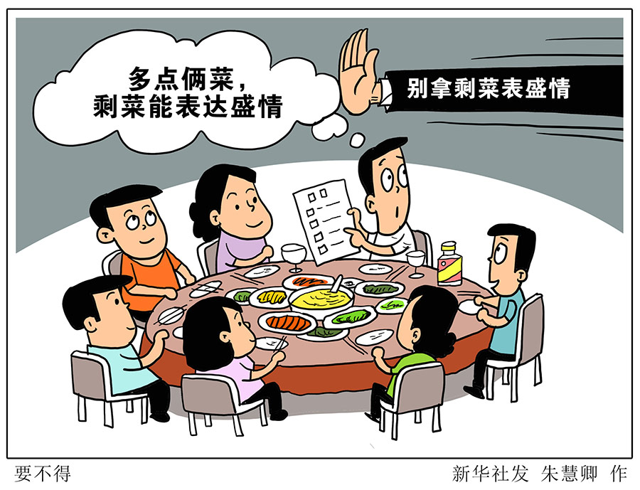 習(xí)近平總書記近日作出重要指示,強調(diào)堅決制止餐飲浪費行為切實培養(yǎng)節(jié)約習(xí)慣,在全社會營造浪費可恥節(jié)約為榮的氛圍。這一重要指示發(fā)人深省、飽含啟示。在日常生活中,主客散席時留下半桌剩菜的場面并不少見,寧可點多、絕不能少,這種以剩菜表達(dá)盛情的心態(tài)和行為要不得。