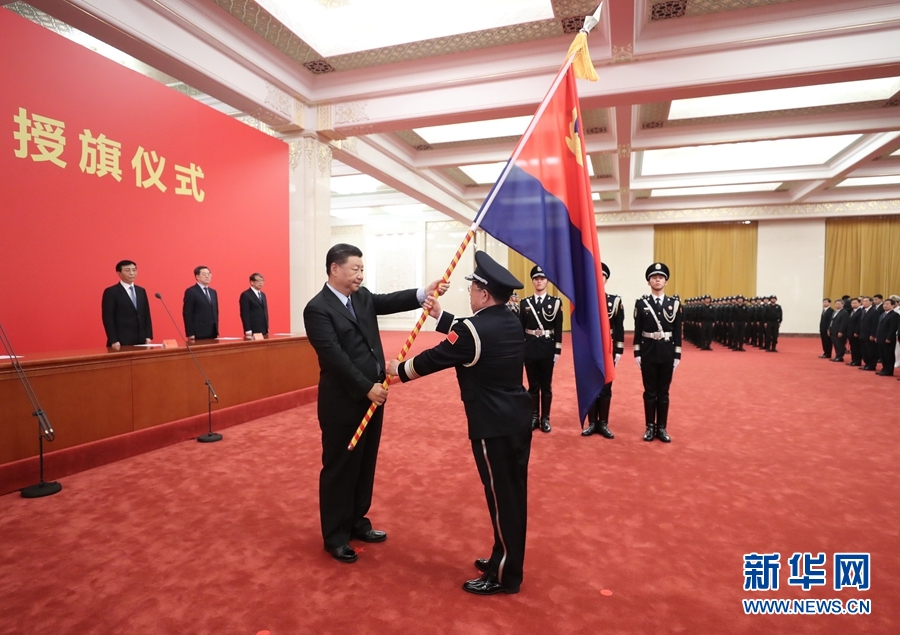 新華社北京8月26日電 中國人民警察警旗授旗儀式26日在人民大會堂舉行。中共中央總書記、國家主席、中央軍委主席習(xí)近平向中國人民警察隊伍授旗并致訓(xùn)詞,代表黨中央向全體人民警察致以熱烈的祝賀。他強調(diào),我國人民警察是國家重要的治安行政和刑事司法力量,主要任務(wù)是維護(hù)國家安全,維護(hù)社會治安秩序,保護(hù)公民人身安全、人身自由、合法財產(chǎn),保護(hù)公共財產(chǎn),預(yù)防、制止、懲治違法犯罪。新的歷史條件下,我國人民警察要對黨忠誠、服務(wù)人民、執(zhí)法公正、紀(jì)律嚴(yán)明,全心全意為增強人民群眾獲得感、幸福感、安全感而努力工作,堅決完成黨和人民賦予的使命任務(wù)。