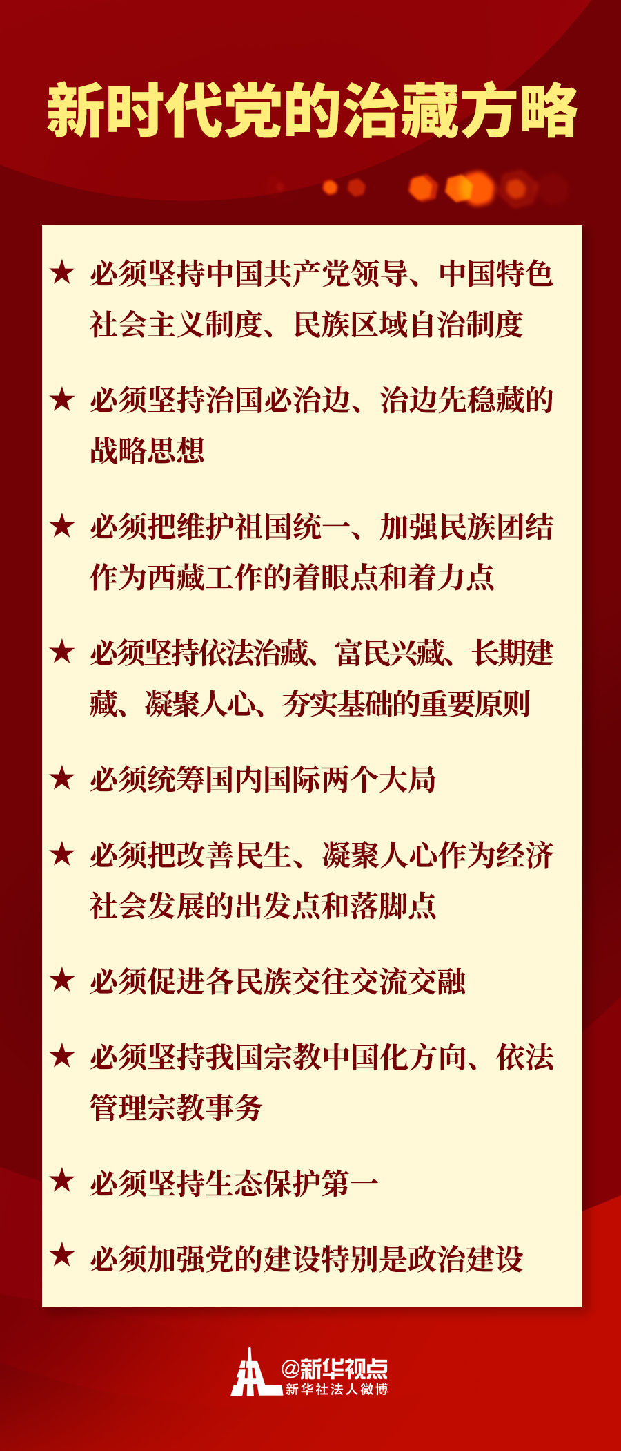 例如,明確提出“必須把維護祖國統(tǒng)一、加強民族團結作為西藏工作的著眼點和著力點”;在過去表述基礎上,把“必須統(tǒng)籌國內(nèi)國際兩個大局”單列一條;進一步提出“必須堅持我國宗教中國化方向、依法管理宗教事務”;更加鮮明地提出“必須加強黨的建設特別是政治建設”。
