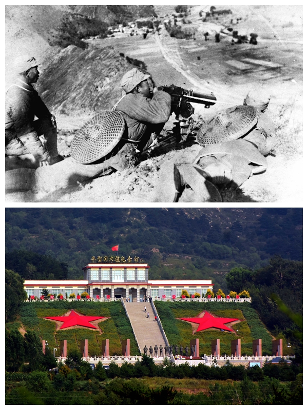 上圖為1937年9月25日,中國共產(chǎn)黨領(lǐng)導(dǎo)的人民軍隊取得抗戰(zhàn)以來第一個重要勝利——平型關(guān)大捷。這是平型關(guān)戰(zhàn)斗中,一一五師某部的機槍陣地。
