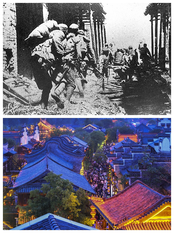 上圖為1938年4月上旬,中國軍隊在臺兒莊與日軍展開激烈巷戰(zhàn)。