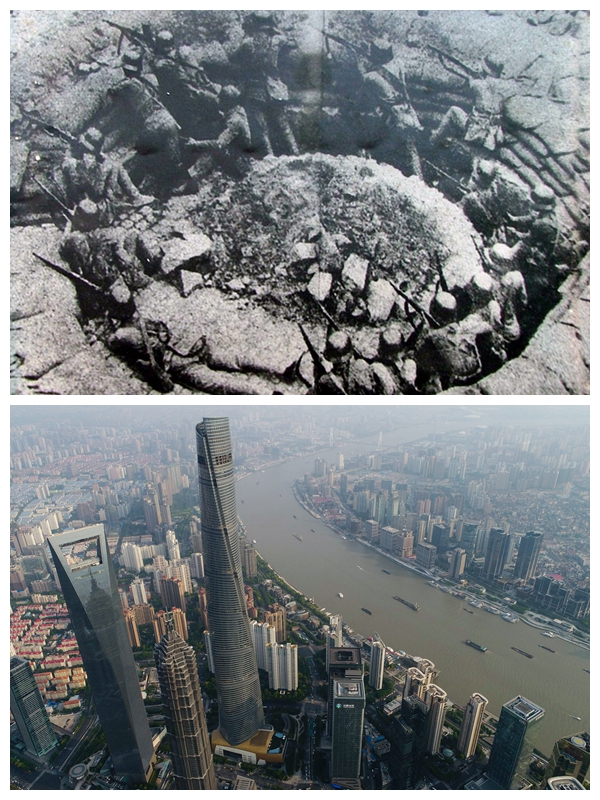 上圖為1937年8月13日至11月12日,中日軍隊進行淞滬會戰(zhàn),這次會戰(zhàn)粉碎了日本軍國主義者速戰(zhàn)速決的迷夢。這是中國軍隊88師在上海閘北的環(huán)形工事里同日軍巷戰(zhàn)。