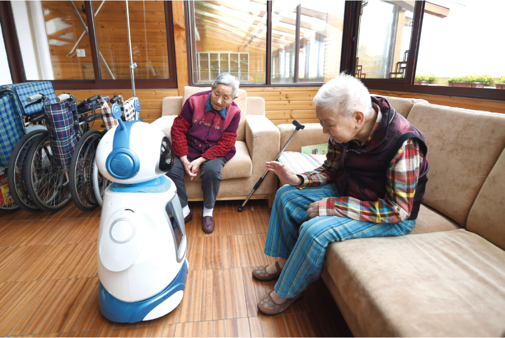“傳音入密”的廣場舞神器,游戲機一樣的康復機器人,“床椅一體化機器人”,還有車鑰匙大小、可定位可報警還可社交的智能助老終端機……以互聯網、物聯網、大數據、人工智能為代表的現代信息技術,正在推動新時代養老服務業“彎道超車”。