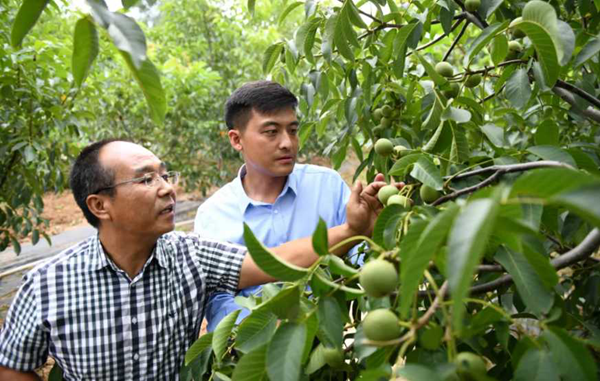 干部查看核桃長勢 李一博 攝