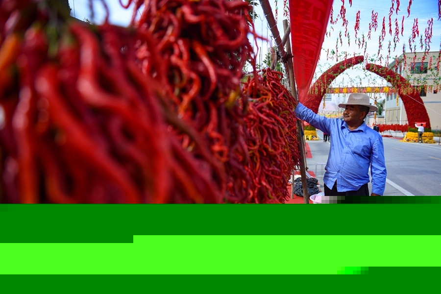 農戶在2020年慶祝中國農民豐收節暨循化縣消費扶貧“辣椒節”現場銷售線辣椒。(新華網潘彬彬 攝)