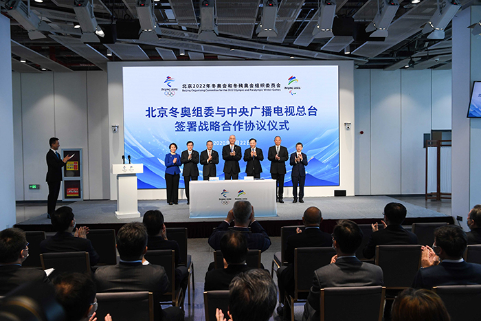 在北京冬奧會倒計時500天之際,2020年9月22日上午,中央廣播電視總臺與北京冬奧組委簽署《相約北京系列冬季體育賽事轉(zhuǎn)播工作框架合同》和《北京冬奧會電視轉(zhuǎn)播科技創(chuàng)新應用及科技冬奧重點專項技術協(xié)同戰(zhàn)略合作框架協(xié)議》,標志著雙方冬奧宣傳轉(zhuǎn)播報道、科技創(chuàng)新引領合作進入新階段。