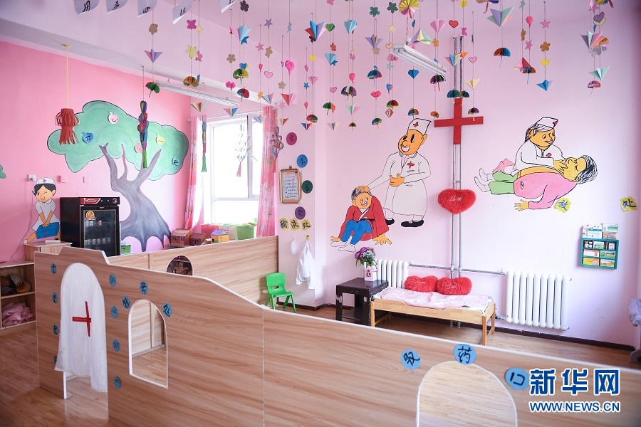 青海省果洛藏族自治州瑪沁縣拉加鎮中心幼兒園的興趣教學室。(新華網潘彬彬 攝)