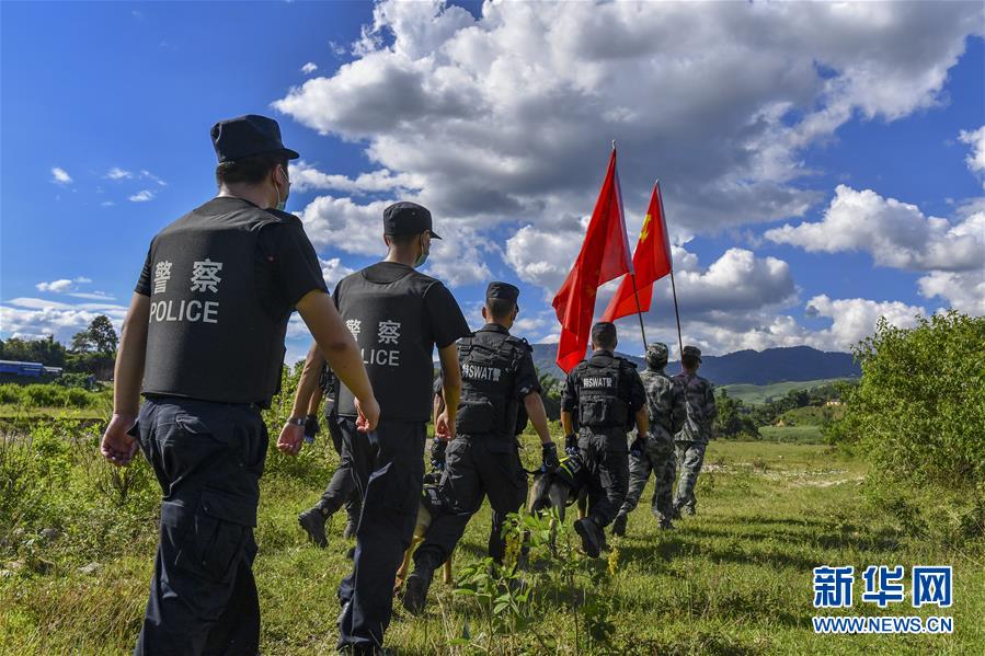 執勤人員在瑞麗邊境一線進行24小時巡邏(9月20日攝)。 新華社記者 江文耀 攝