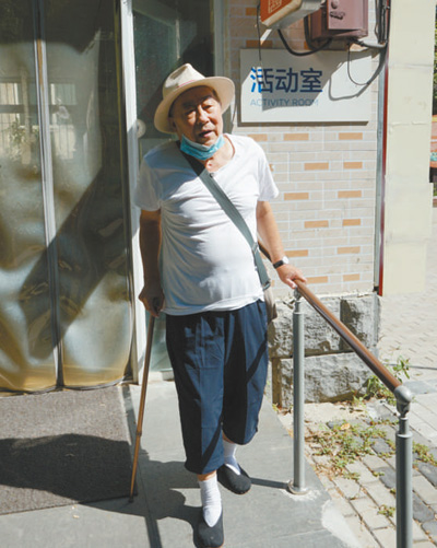 北京市海淀區(qū)北下關(guān)街道南里二社區(qū)經(jīng)過(guò)適老化改造后,老人生活更加方便。圖為社區(qū)養(yǎng)老服務(wù)中心門(mén)口,腿腳不便的老人依靠扶手出門(mén)。記者 申少鐵攝