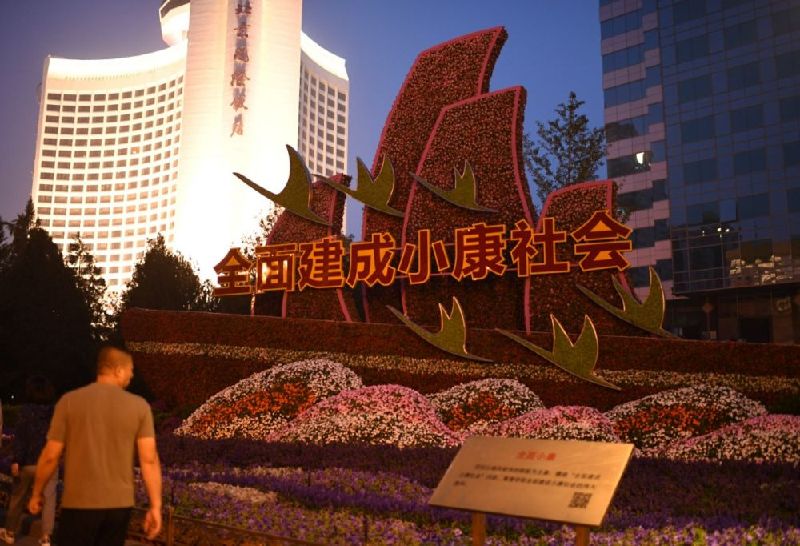早晨5點半,北京日報客戶端記者從東長安街建國門的第1處國慶花壇《全面小康》出發,經東單、西單兩個花壇布置區,終點到達位于西長安街的復興門第10處花壇《復興偉業》。