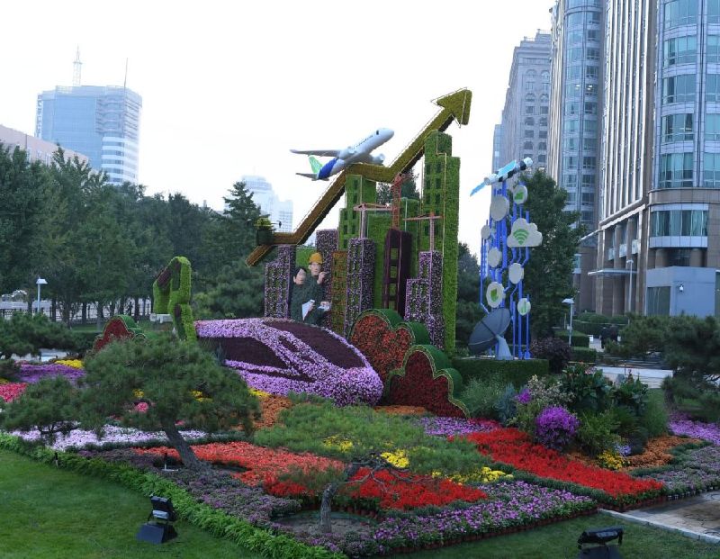 今晨,北京長安街10處國慶主題花壇驚艷亮相