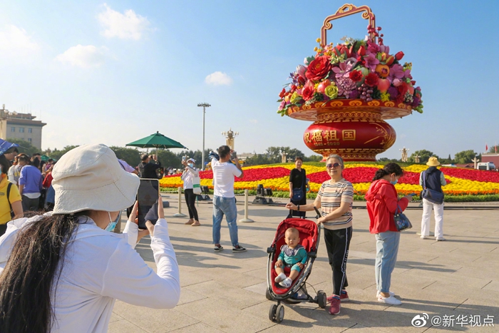 驚艷!“祝福祖國”大花籃正式完工 亮相天安門廣場