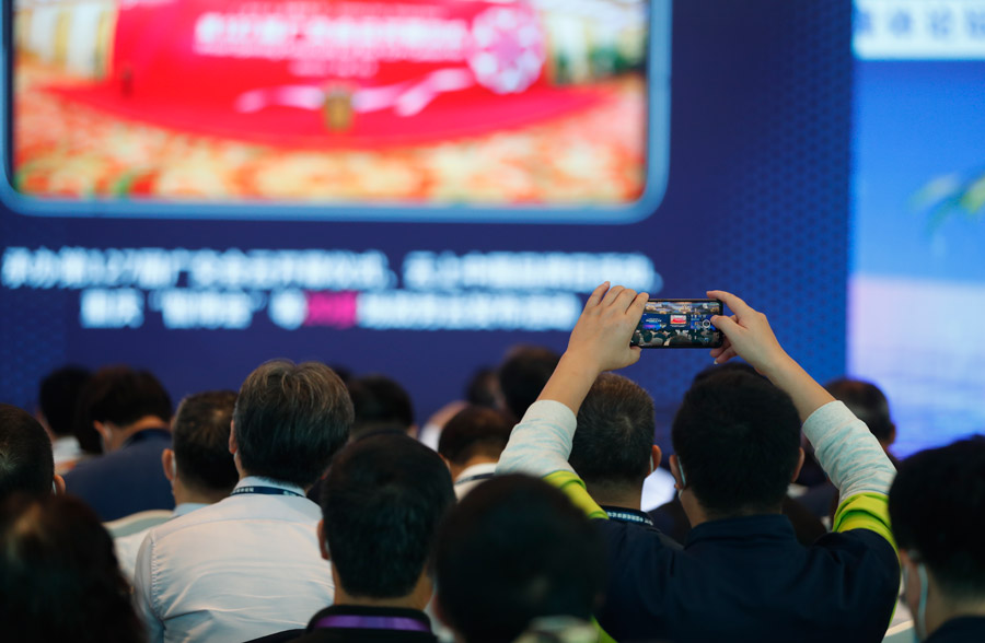 ??? 9月27日,2020中國網絡媒體論壇內容論壇在上海舉行,各界嘉賓圍繞“后疫情時代網絡傳播的‘變’與‘新’”這一主題開展探討和交流。圖為觀眾在論壇現場拍攝。