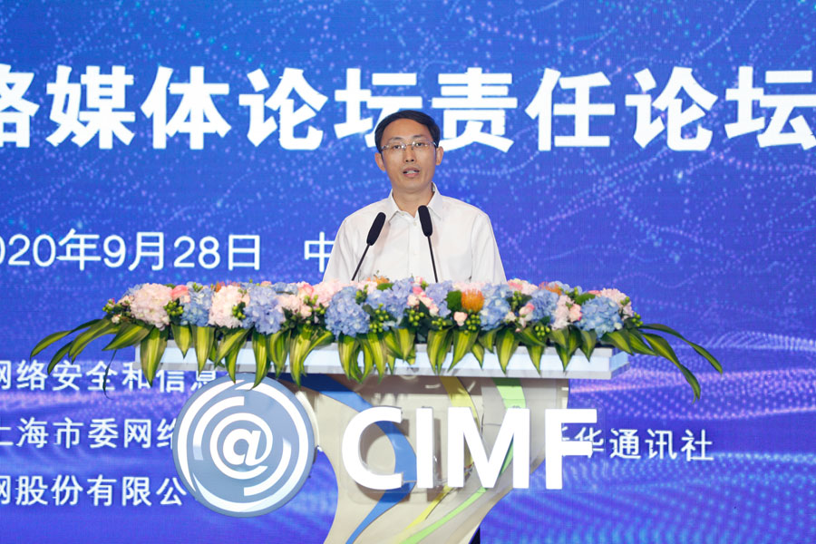 新華網黨委副書記、總編輯郭奔勝在2020中國網絡媒體論壇責任論壇上致辭。新華網 陳杰 攝